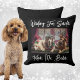 El Cojín decorativo de Navidades fotográficos de un perro para sus decoraciones navideñas en casa. Añade una foto de un mascota a esta almohada para crear un regalo divertido. Esta almohada está diseñada con el texto: Esperando a Santa, y el Nombre o los Nombres del Perro o Perros. Para personalizar, simplemente inserte la imagen en nuestra plantilla fácil, reemplazando la foto de ejemplo. Asegúrese de que esté centrado y como desee. A continuación, inserte el nombre o los nombres del mascota en la plantilla, reemplazando el texto de ejemplo. Tanto el fondo delantero como el inverso son negros con texto en el frente.