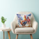 Navidades amables tiran almohadas con un pollo a la acuarela parado frente a una valla rústica de madera frente a un granero.