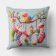 Bolas de Navidades coloridas adornadas con holly y colgadas de una rama, acompañadas de dos pájaros alegres, creando un ambiente alegre y festivo perfecto para el espíritu vacacional.