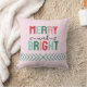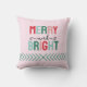 ¡Feliz y brillante! almohada festiva con tonos rosas y verdes.