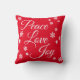 Decoren la casa con Peace Love and Joy, este Navidad con este diseño clásico y moderno de copos de nieve lanza almohada. Modern PEACE LOVE JOY en tipografía de escritura blanca con copos de nieve blancos y fondo rojo de vacaciones. Por favor, envíeme un correo electrónico si desea hacer algunos cambios de diseño designsbykatz@gmail.com ¡Felices Fiestas!