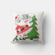 Una almohada de estilo retro, divertida, alegre y alegre, con un fondo de blanco con una Santa Cláusula retro en traje rojo y gorra de caldo, texto que lee Ho Ho Ho, un árbol de vacaciones adornado con adornos de bola roja, regalo envuelto y jugo con bayas. Ambos lados están impresos con el mismo diseño. ¡Tenemos la manta de lanzamiento y la falda de árbol a juego!