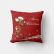 Ratón personalizado lindo con sombrero de Papá Noel sosteniendo un regalo a su espalda. Un fondo rojo profundo con nevadas blancas hace que un Navidad muy lindo, divertido y festivo arroje diseño de almohadas.