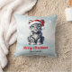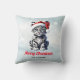 Un lindo bebé de leopardo de las nieves con sombrero de Santa en la nevada temporada invernal Navidades lanzan almohada.