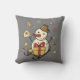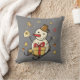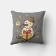 Un lindo muñeco de nieve en un trineo con un regalo, una letra pequeña y decoraciones navideñas.