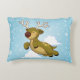 Una linda imagen personalizado de un adorable reno navidad volando en el cielo con copos de nieve y nubes en el fondo.