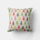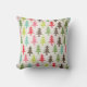 Muchos bonitos salpicados de árboles navideños de puntos blancos sobre marrón, rojo, verde, rosa y agua con un fondo blanco.
