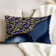 An elegant pattern of gold faux glitter leopard spots on a navy blue background combines with navy blue agate trimmed with faux gold glitter in this luxurious accent pillow.