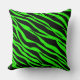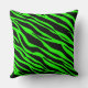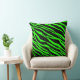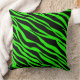 Las brillantes rayas verdes de cebra de neón cubren esta almohada impresionante de lanzamiento cuadrado.