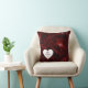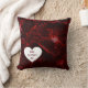En la almohada tira varios tonos rojos. El diseño es una foto digital de delicados violas. Los rojos oscuros y los tonos rosas claros se unen para dar a esta almohada un aspecto de neón. Hay un corazón blanco con un texto rojo profundo que dice, "FELIZ DÍA DE VALENTINA", en la esquina inferior izquierda, de la almohada. El texto se puede personalizar o se puede eliminar el texto y el corazón.