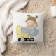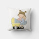 Una almohada linda para la habitación de tu pequeña niña, con una niña personalizado sosteniendo su muñeca que está a punto de colocar en el cochecito o la cochecita de su muñeca. Los colores son rosa, azul y amarillo pastel... la imagen está situada a un lado del cojín, el color de fondo es blanco. Otra versión disponible con el diseño en ambos lados.