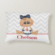 Para una mirada náutica, esta almohada de acento lindo muestra a una niña vestida durante un día en la playa con un ancla roja y un puntito polka en el pelo. El fondo de contraste es un patrón de rayas de chevron gris claro para añadir estilo. Personalice este elemento editando el nombre del ejemplo con el nombre de su hijo. El adorable gráfico personalizado es cortesía de Kristi W. Designs.