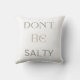 Añade un toque de diversión y alegría a tu espacio con este cojín "No seas salado". Con un diseño lúdico, este cojín es perfecto para los que aman el humor, el juego de palabras y una pequeña actitud. Ideal para salas de estar, habitaciones o decoración de oficina, este cómodo y elegante cojín es un gran regalo para los amigos, la familia o cualquier persona que aprecie un buen chiste. Trae algo de diversión desenfadada a tu casa con este acento imprescindible