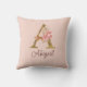 Cojín Decorativo Nombre personalizado Blush rosas rosadas hoja dora