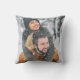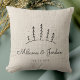 Almohada moderna rústica para tirar con el nombre de la pareja personalizado y fecha, una escena de árbol nevado de invierno, y su foto favorita en la parte posterior. Perfecto para esa primera Navidad juntos después de casarse o mudarse a un nuevo hogar juntos.