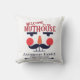 This customizable and funny Christmas-themed throw pillow includes the phrase, "Welcome To The Nuthouse." This festive design features fun holiday-style typography, and a large brightly colored nutcracker face. Customize the name and date on this pillow to give as a gift or add to your own personal holiday decor!