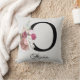 Cojín Decorativo O inicial dorada con flores rosadas monogramadas