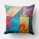 Una almohada llamativa adornada con un diseño de olas de colores que realzan el encanto estético de las habitaciones con sus tonos vivos.