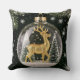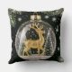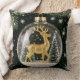Un primer plano de un brillante adorno navideño con un reno dorado rodeado de una escena nevada y árboles verdes. La decoración refleja con elegancia la esencia festiva y mágica de la temporada de vacaciones.