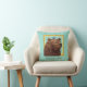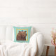 almohada suave para la habitación de cualquier niño. Oso dulce con mariposa en la cabeza, enmarcado en amarillo en una almohada verde menta. Personaliza con cualquier nombre o texto.