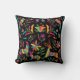¡Brilla tu habitación con este único Cojín decorativo mexicano otomí "One of a Kind"! Presenta una imagen mexicana con animales, pájaros y flores en vivos colores vivos y brillantes... ¡en un fondo negro!