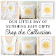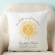 This cute baby pillow features a yellow smiling sun and says "A Little Ray Of Sunshine" in stylisg script typography.