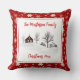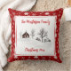 Agregue su nombre de familia a este Cojín decorativo de estilo rústico de país, diseñado con una escena de la granja de invierno en un fondo blanco. El borde delantero y el reverso son rojos con copos de nieve blancos. El texto incluye la palabra: Navidades, y el año en un color rojo brillante. Para personalizar, simplemente inserte el nombre de su familia, junto con el texto: Navidades con el año actual, usando nuestra plantilla sencilla y reemplazando el texto de ejemplo. Hace un gran regalo para los Navidades.