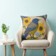 Ilustración colorida de un pájaro posado en una rama, rodeado de flores amarillas y margaritas azules. La obra de arte presenta un patrón punteado y una armoniosa combinación de tonos azules, amarillos y terrosos, creando una composición alegre y animada.