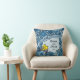 ¡Aquí está una 45.a almohada temática floral compleja caprichosa del aniversario de boda que usted puede personalizar para una novia y un novio especiales! Dos currucas del protonotario se encaraman en una frontera decorativa del estampado de flores hecha de flores y de remolinos artísticos en sombras del azul. Los pájaros se sientan al lado de un espacio por dos nombres y un año que se casa en texto de la escritura.