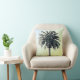 Elegante palmera en la almohada de tiro. Elegante diseño tropical vintage. La palmera se encuentra en un fondo de color verde moteado. La parte trasera tiene el patrón de palmeras.