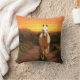 Caballo de palomino en un camino de tierra con el sol levantándose o poniéndose al fondo los amantes del caballo tiran almohada
