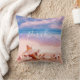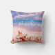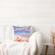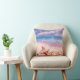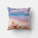 Hermoso paisaje marino romántico con conchas de arena rosa suave en la playa. La ola lava suavemente la orilla, las nubes rosas flotan en el cielo azul. El ambiente paradisíaco y tranquilo