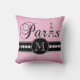 Esta almohada de tiro elegante rosada negra y femenina con personalizó su inicial del monograma, la palabra "París" con la torre Eiffel y una línea de diamantes blancos impresos en una banda negra parecerá asombrosa en su dormitorio o sala de estar como almohada del acento. La galería Gifts© Elke Clarke del monograma diseña el ©