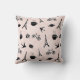 Moda La almohada de tiro inspirada en París tiene un patrón de pájaros diminutos, croissants, macarons, rosas, tazas de café y, por supuesto, la Torre Eiffel, en blanco y negro sobre un fondo rosa pálido con un sutil tono en tono geométrico.