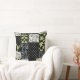 Un Cojín decorativo de moda Faux Patchwork o Cushion al estilo Art Nouveau, con Lilies-of-the-Valley sobre un fondo negro; de la colección Posh & Painterly 'For the Love of Lilies'.