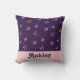Tiene una pequeña dama especial a la que le gustaría dar la bienvenida a su familia o círculo de amigos? Tal vez esté diseñando una guardería con tema de mariposas. Esta funda de cojín presenta pequeñas mariposas de satén rosa que revolotean alrededor del fondo de color púrpura oscuro. La parte inferior de la almohada muestra un banner rosa claro sólido junto con el nombre del bebé. La parte posterior tiene el mismo color de fondo púrpura real sólido que la parte delantera. Cambie rápida y fácilmente el texto y el color de fondo.