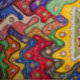 un mensaje de palabra agradable en la parte posterior más un patrón de rt azul rosa y real