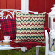 Cojín Decorativo Patrón de Chevron Beige Verde Blanco Rojo