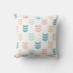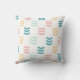 Diseño abstracto de patrón Chevron en verde verde azulado, verde menta, amarillo dorado y melocotón. Este patrón colorido se repite a ambos lados de la almohada.