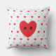 Patrón cardíaco azul claro y magenta rojo sobre Cojín decorativo blanco. Un gran corazón rojo feliz está en el frente. La imagen del corazón rojo se puede personalizar.