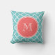 Cojín Decorativo Patrón de cuatrefoil verde azulado, monograma cora