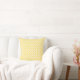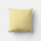 Patrón de cuatreil amarillo sobre almohada cuadrada de fondo blanco.