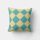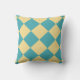 Una almohada de tiro de bonito para primavera con un elegante patrón de diamante turquesa y amarillo impreso en ambos lados. Bonita decoración casera.