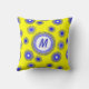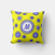 Flor azul digital en una almohada de fondo amarillo brillante que crea una gran decoración de verano.