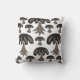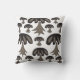 Cojín decorativo de patrón de hongos de color gris negro.