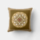 Tirar almohada en un patrón de mandala de 12 puntos en tonos toscos, marrón chocolate y crema con fondo marrón chocolate oscuro, enmarcado en marrón de camello