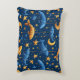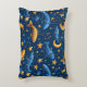 Varios peces estilizados en tonos azules y naranjas, rodeados de estrellas y una luna creciente sobre un fondo azul oscuro.