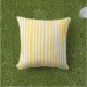 almohada cuadrada de patrón rayado amarillo y blanco. Rayas amarillas y blancas.