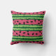 Una almohada con un bonito patrón de sandía. Corteza verde en capas de rayas junto con una capa de rayas rosas con semillas negras dentro. Diseño divertido y veraniego.