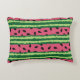 Una almohada con un bonito patrón de sandía. Corteza verde en capas de rayas junto con una capa de rayas rosas con semillas negras dentro. Diseño divertido y veraniego.